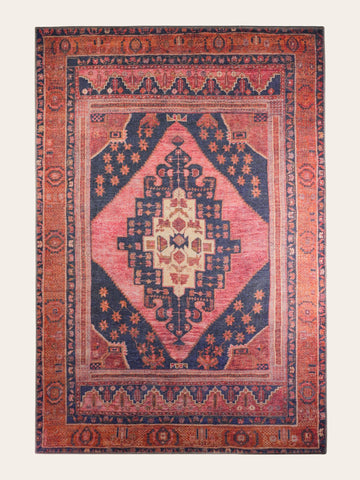 Peri Vera valt op door het warme samenspel van roest, oudroze en diepblauw, met een...